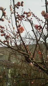 暖かい日が続いたかと思えば、寒くなるという 変な天気が続いています。 市内では、すでにウメは開花していましたが 2週間遅れで、圃場でもウメが開花し始めました。