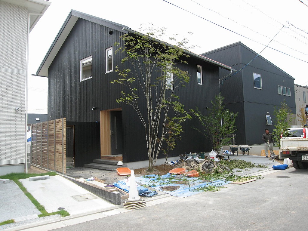 秋空の下、セントラルシティーこころにて外構造園工事進行中です。