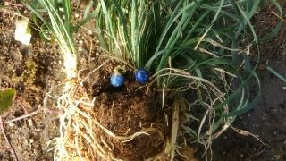 タマリュウは株元に小さな薄紫色の花 咲かせ、きれいな青い実をつけます。