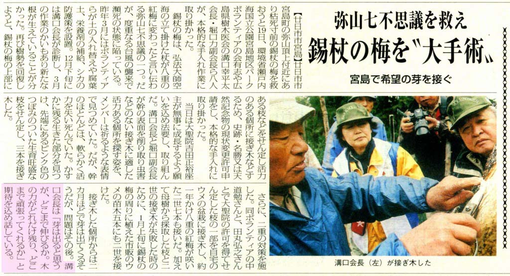 | 錫杖の梅を大手術 | 2008年02月22日 | 西日本タイムズ |