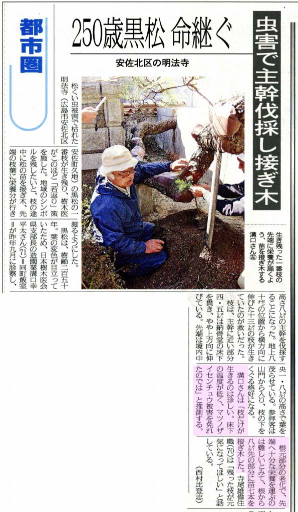| 250歳黒松命継ぐ | 2008年03月12日 | 中国新聞 |