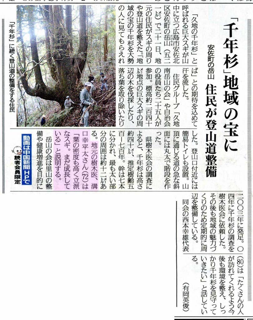 | 「千年杉」地域の宝に | 2009年03月22日 | 中国新聞 |