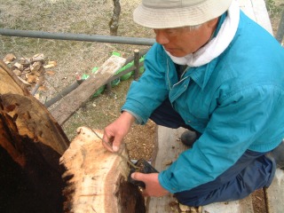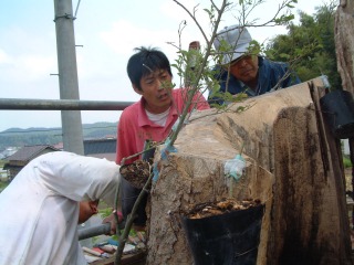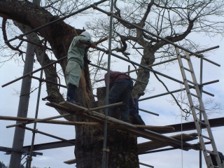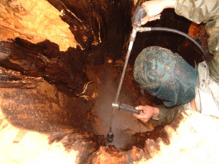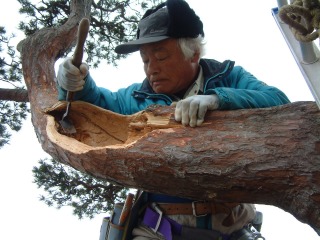| 自然風の庭づくり施工例>>樹木医による樹木診断治療>>治療の様子 |