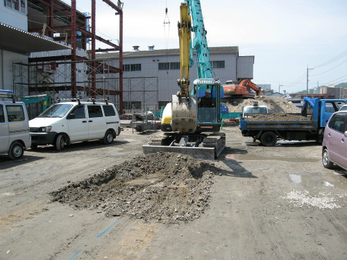 砕石舗装の砕石を取り除き、客土を実施しました。 仕上がり地盤に合わせるため、相当量の客土を搬入しました。 |