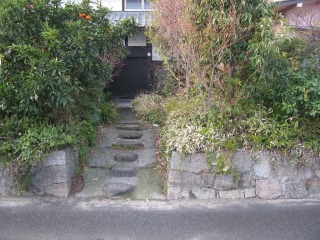| 玄関へのアプローチ部分です。階段を取り付け、両側の植栽を変更しました。植栽による圧迫感を軽減するため、下草類を利用しています。 | ||