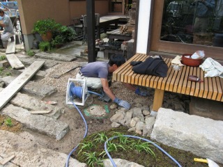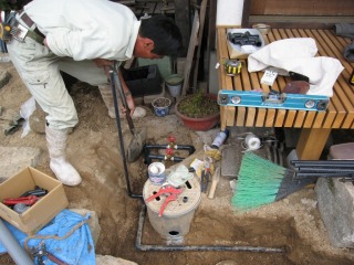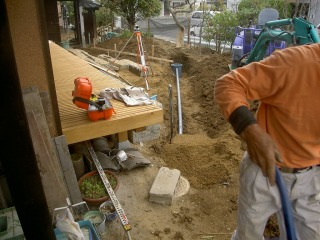 | 給水工事です。 | 排水工事です。どこに水を集め、どこに逃がすのか、よくよく考えなければなりません。 | |