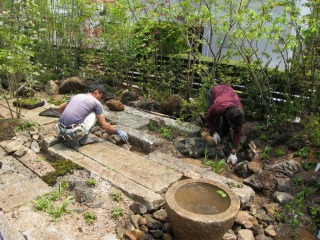 | 長束にあるギャラリーのお庭です。日本建築を改装されたギャラリースペースで、絵画・彫刻の芸術作品の展示や、音楽の演奏会などを催されております。 建築物内部はギャラリーとして整えられておりましたが、外回り・庭部分については、計画的には手をつけられておられませんでした。 【スペース手WEBページ】 |