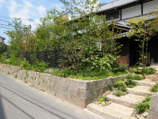 | 鬱蒼として暗かったお庭が、軽やかで鮮やかなお庭に生まれ変わりました。加工した石、自然な石、植物と、材料の自然度を段階的に高めていくことにより、里山的な雰囲気を目指しています。 | ||