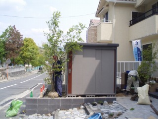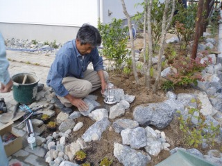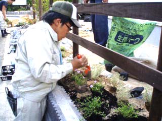 | 植栽を施していきます。 | 下草類を植えつけています。 | |