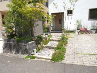 | 自然風の庭づくり施工例>>35城山「H邸」新築エクステリア工事 |