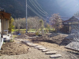 | 手前のスペースは畑となっておりましたが、庭として利用することになりました。 |