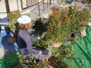 | 高木を植え込んでいきます。 | 続いて低木を植え込みます。低木も整姿剪定をします。 | |