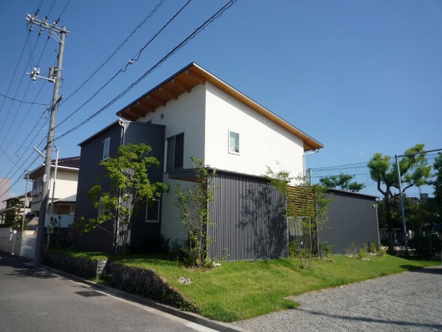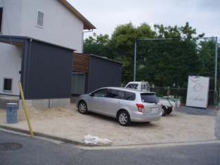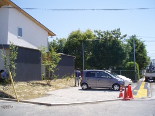 | 駐車場は道路面とフラットになっています。そこから斜めに立ち上がっています。 | ||