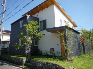 | 大須加建設様が五日市中央に作られた、モデルハウスの外構空間を整備しました。 黒色の壁面には緑色が映え、建築と自然が気持ちよく溶け合っています。 【大須加建設WEBページ】 |