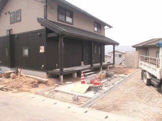 | まだ住宅工事に着手していない段階からご相談を頂きました。早い段階からお話を頂けると、造園的な見地からアドバイスを行うことができます。 | 住宅工事が始まりました。基礎が完成したところです。撮影はしておりませんが、現場が近かったため、着手までに何度も足を運びました。 | |