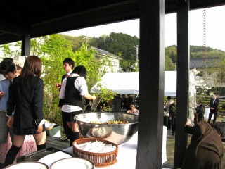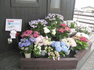| 新築されてすぐにホームパーティーが開催されました。広い庭にテントを設けて、ケータリングを行っています。 | パーティーは新築披露の意味合いもあると伺い、ささやかながらアジサイの鉢花をご用意させて頂きました。パーティーを訪問された皆様に、お持ち帰り頂きました。 | |