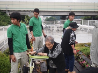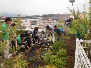 | 自然風の庭づくり施工例>>65「みんなの家」TV撮影風景 |