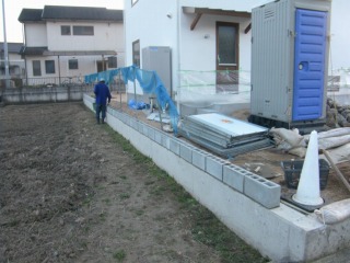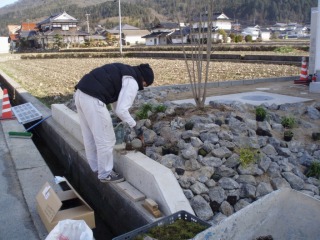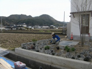 | コンクリートブロックを積んでいます。 | 地被植物を、石と石の間に植えつけています。 | |